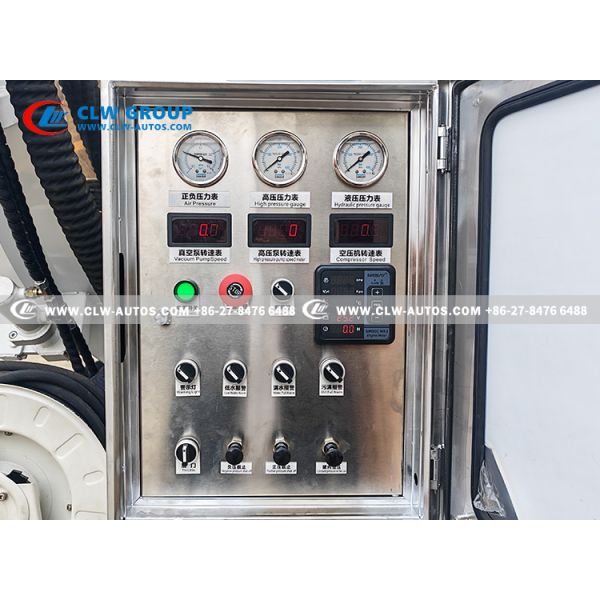 For flushing and blockage removal, the truck is equipped with a high-pressure Pinfu jetting pump capable of delivering 350 L/min at 180 bar. Power is transmitted through a stable and efficient sandwich PTO system, ensuring consistent jetting performance during continuous tasks. The unit’s suction capability comes from a Weilong vacuum pump generating 7000Pa absolute pressure and 68 L/s airflow, enabling fast extraction of sludge, wastewater, and debris.